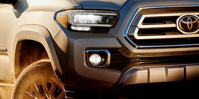 The 2020 Toyota Tacoma comes in six different trim levels: SR, SR5, TRD Sport, TRD Off-Road, Limited, and TRD Pro. Even the base trim level has style with a bold front fascia and LED headlights. The top-of-the-line TRD Pro gets features like a TRD Pro skid plate, LED fog lights, TRD Pro desert air intake, and 16-inch TRD Pro black alloy wheels. The Tacoma trim levels also come in short and long cargo beds.