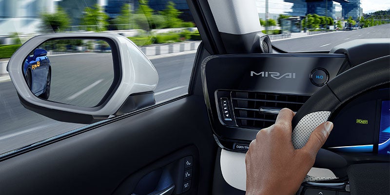 Mirai's Blind Spot Monitor (BSM) with Rear Cross-Traffic Alert (RCTA) is designed to help look out for your safety. The Blind Spot Monitor warns you when a vehicle in the next lane enters Mirai's blind spot on either side of the vehicle. And when you're in reverse, the Rear Cross-Traffic Alert helps detect vehicles approaching from either side, warning you with side mirror indicators and a warning tone. Mirai comes standard with eight airbags in total—all designed to help keep you safe.