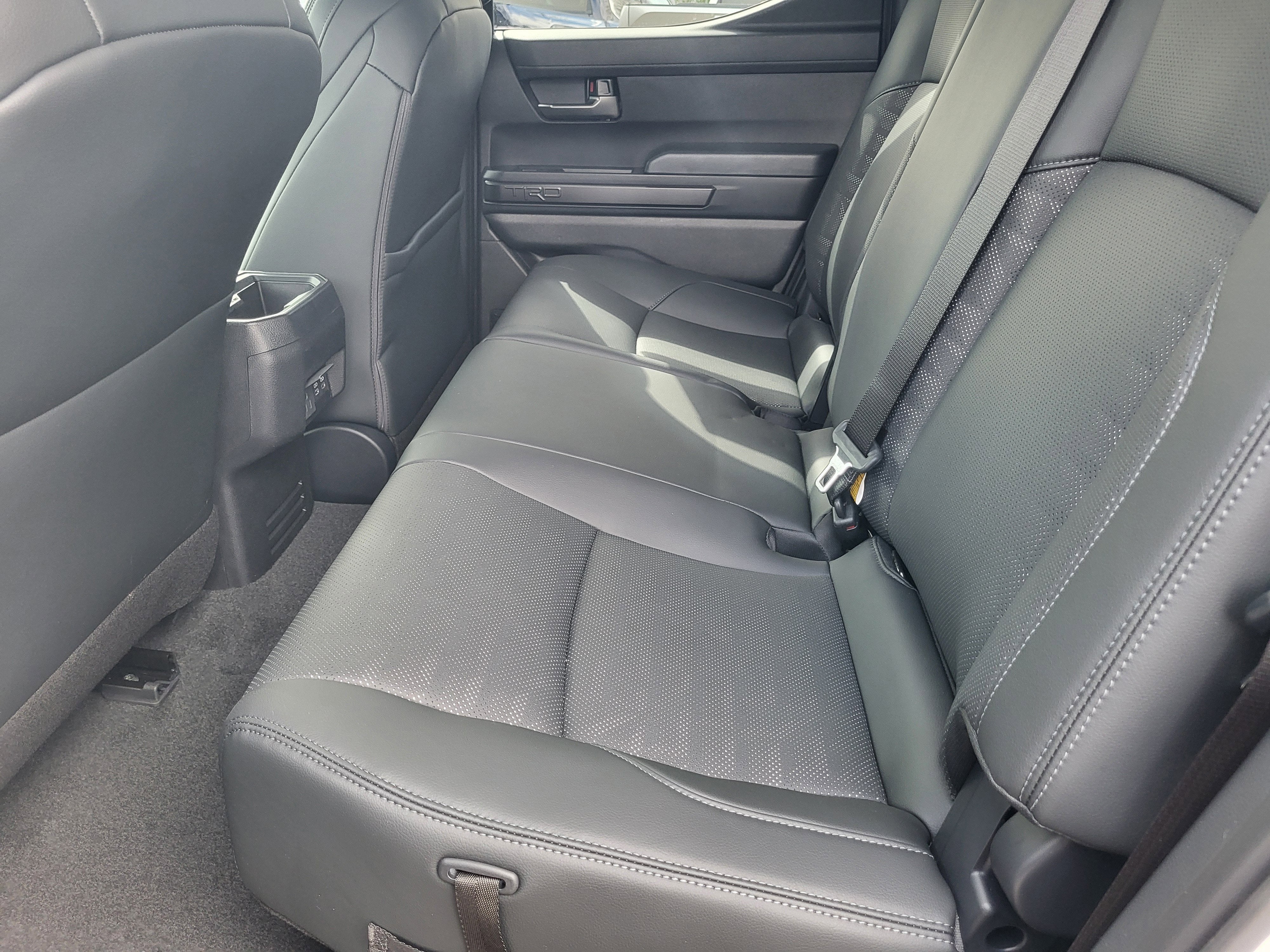 TRD Off-Road Premium Package (A/T) — includes 18-in. TRD alloy wheels SofTex®-trimmed seats with heated and ventilated 8-way power-adjustable front seats leather-trimmed heated steering wheel 14-in. Toyota Audio Multimedia display Multi-Terrain Monitor (MTM) JBL® 30 Premium Audio with JBL® FLEX 31 portable speaker moonroof Qi-compatible wireless charging 46 dual zone automatic climate control Front and Rear Parking Assist with Automatic Braking (PA w/AB) 38 and Pedestrian Detection 44 prewired auxiliary switches digital rearview mirror Integrated Trailer Brake Controller (ITBC) 29 power open/close tailgate 45 61 Digital Key 16 capability 400W/120V 1 AC power inverter and power horizontal rear window