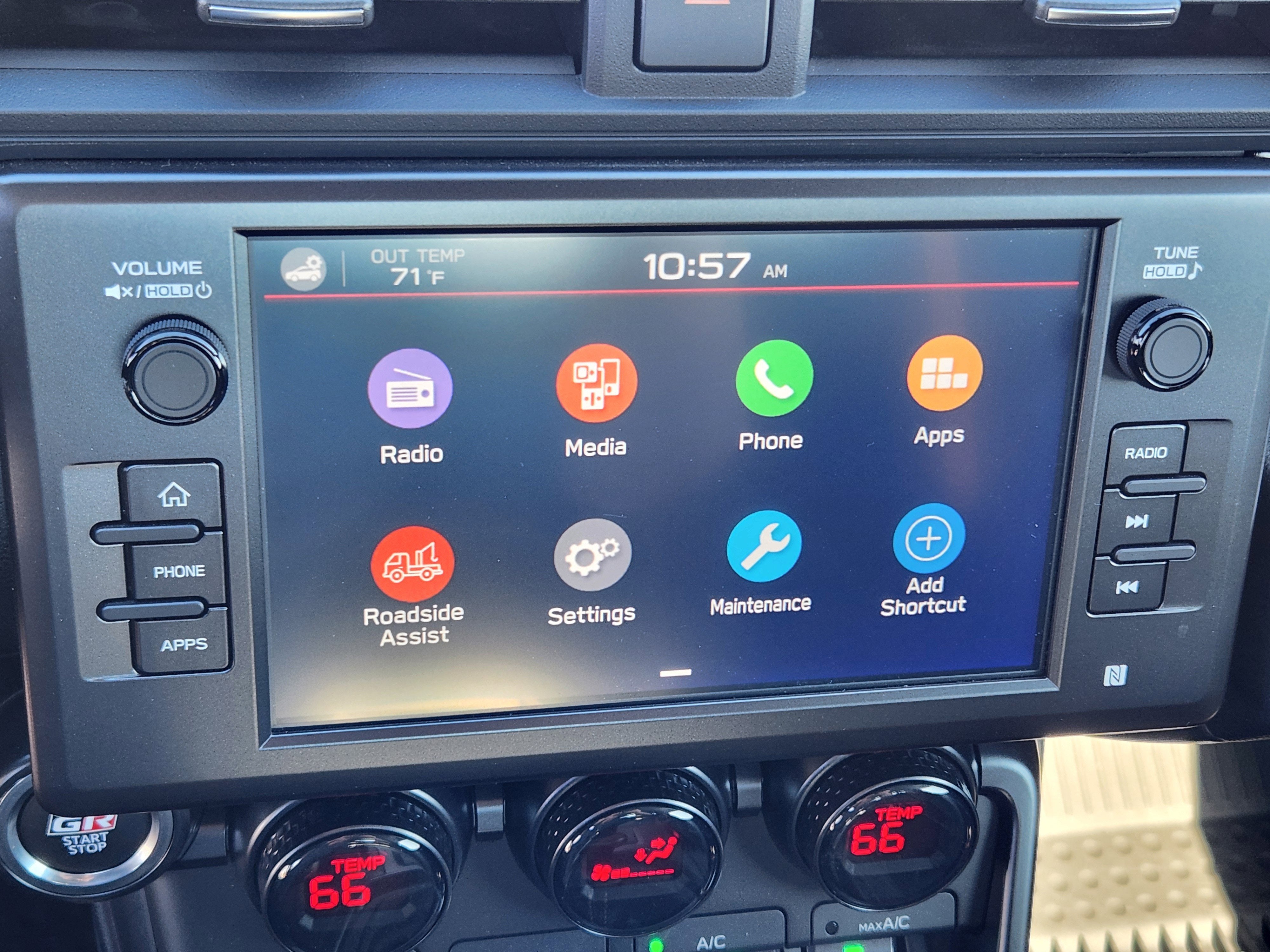- Radio: GR86 Audio -inc: 8" touchscreen, Apple CarPlay and Android Auto compatibility, SiriusXM w/3-month Platinum Plan trial subscription, 8 speakers including amplifier, Safety Connect w/1-year trial, Service Connect w/1-year trial and Remote Connect w/1-year trial